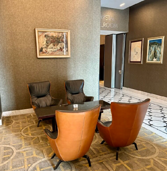 酒店设施还挺齐全,有大型水疗/泳池区、健身中心、赌场,还有旅行社、行政酒廊、餐厅和大堂酒吧。不过屋顶酒吧在我们入住期间关闭了。大堂很大,大理石装饰,有几张座位,前门附近还有个艺术展。大堂中央桌子摆满了鲜花,看着挺有格调。
