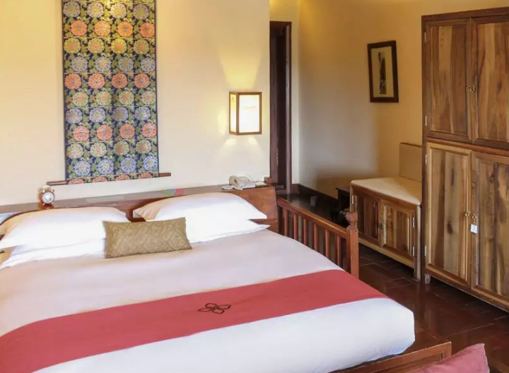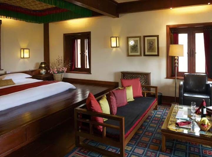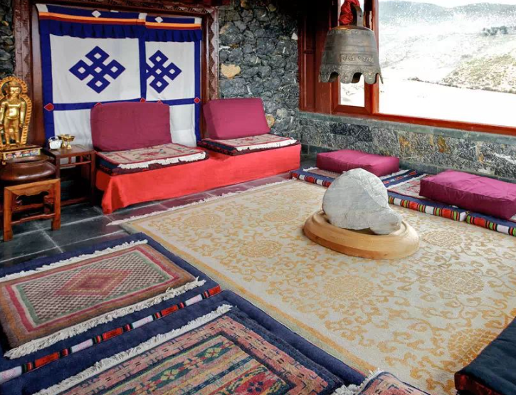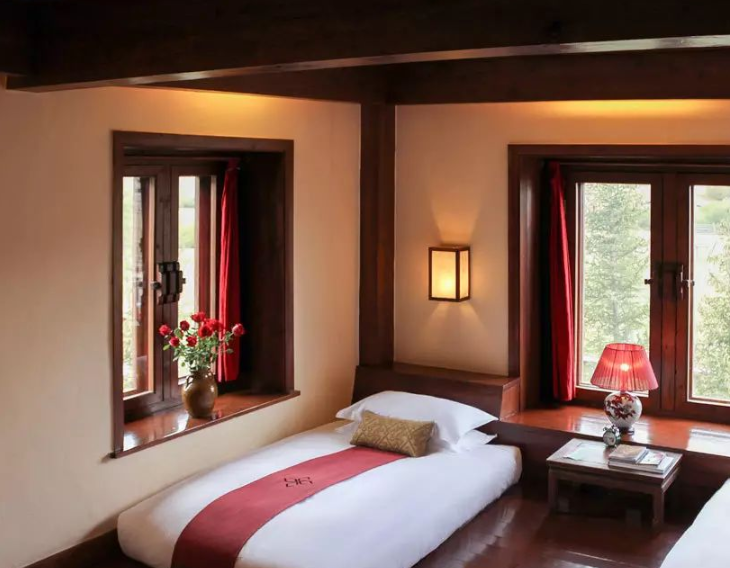 位于香格里拉山区的松赞林卡美憬阁酒店,具有独特的建筑风格和迷人的设计,拥有 75 间客房,分别是标准客房、高级客房和各系列套房。床的设计采用了藏式特色,同时结合了榻榻米的设计。