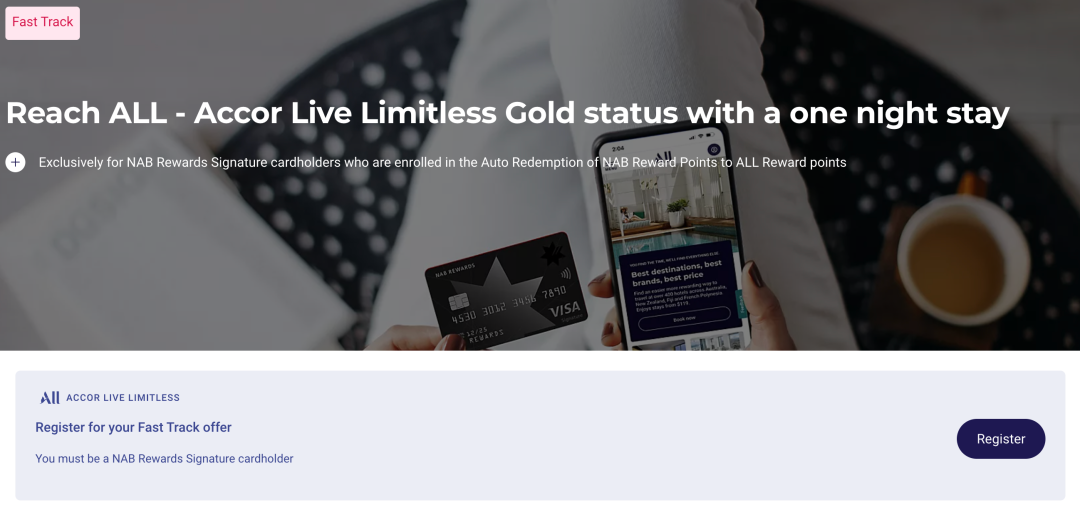 核心玩法:雅高近期上线的NAB澳洲国民银行「一住升金」挑战活动,本来是NAB Rewards Signature信用卡持卡人专属活动,结果现在所与人都能注册,完成挑战后升金卡,雅高目前升金都是直接给30个房晚,这个活动应该也不会例外。
