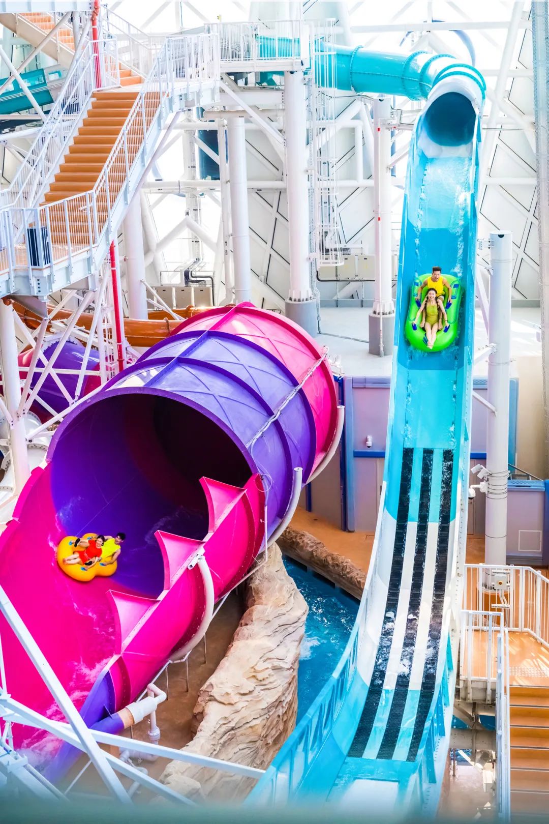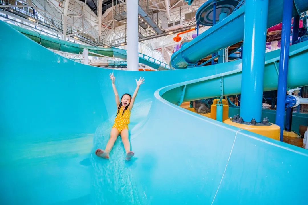 • 龙卷风、超旋风、极风旋涡等五条彩虹滑道+“黄金大水桶”每5分钟倾泻1.8吨巨浪,60+嬉水点全天候畅玩。