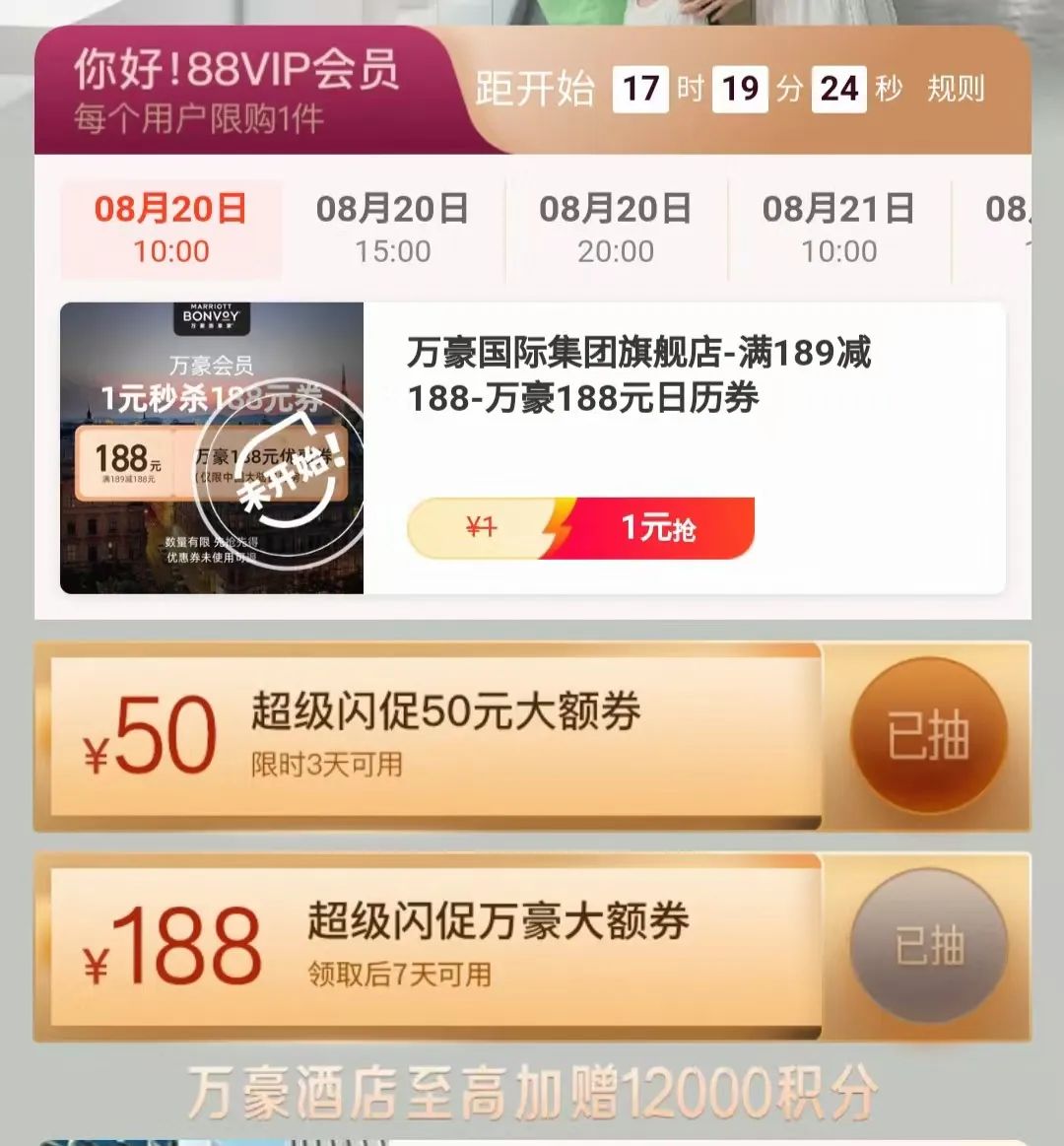 飞猪和万豪的闪促合作一直很给力,几乎每个月都有好几次活动,说是万豪的“第二官网”也不为过!这次更是创下新高,一口气上线了436家门店,覆盖范围之广前所未有。