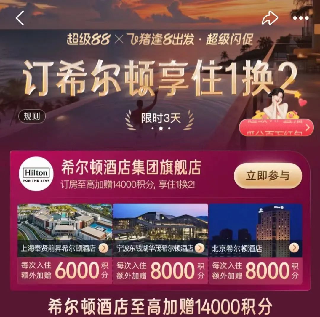 【积分多】订房额外加赠希尔顿积分至高14000积分
