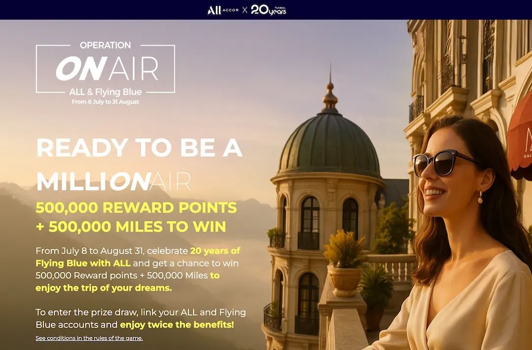 雅高(Accor)与 Flying Blue 目前正开展联合抽奖活动。在8月31日前完成账户关联并成功登记,即有机会一次性获得50万ALL奖励积分及50万Flying Blue里程。