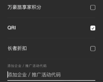 - 通过官方APP查询时,请在"特别房价"选项中输入活动代码:QRI