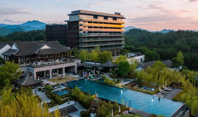 酒店位于灵峰度假区内,周边环境优美,尤其以无边泳池景观著称,是拍照打卡的理想选择。