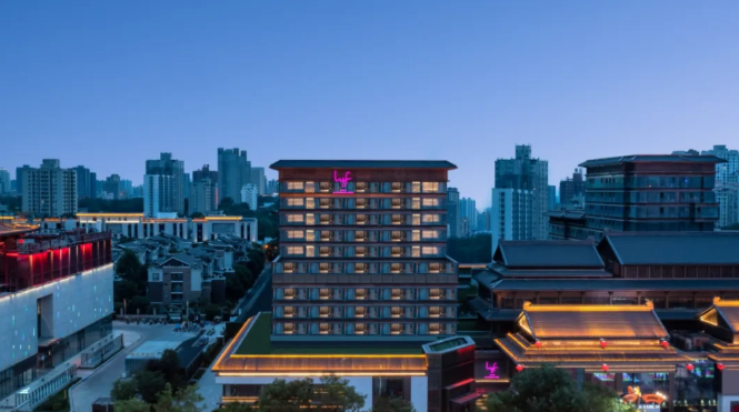酒店于2023年开业,曾荣获美国MUSE设计大奖酒店与度假村类室内设计铂金奖,巧妙融合唐代风格与现代时尚元素,整体设计颇具特色。